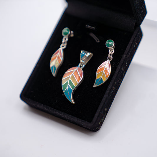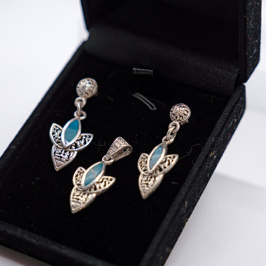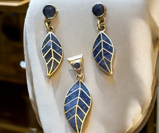 Earrings & Pendant Set - Lapis Lazuli Leaf